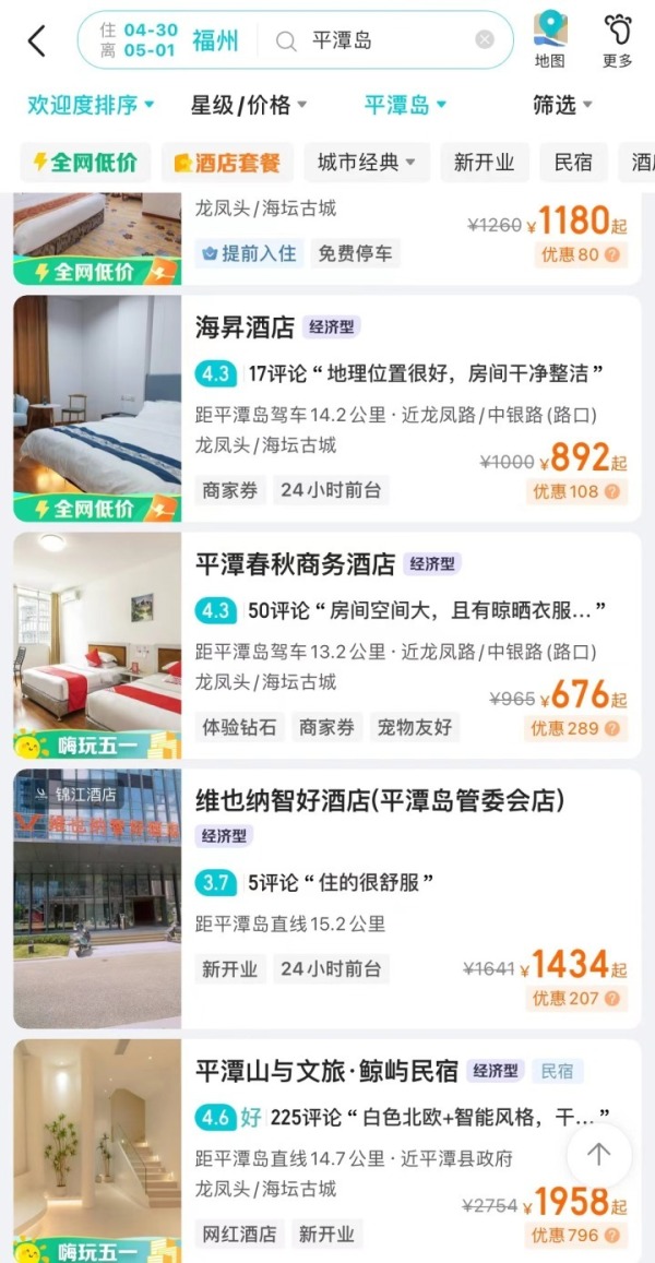 当她在平台上搜索“五一平潭住宿”时,页面出来的信息让她惊呆了!