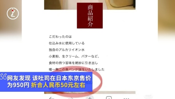 网友发现,该吐司在日本东京售价折合人民币50元左右。