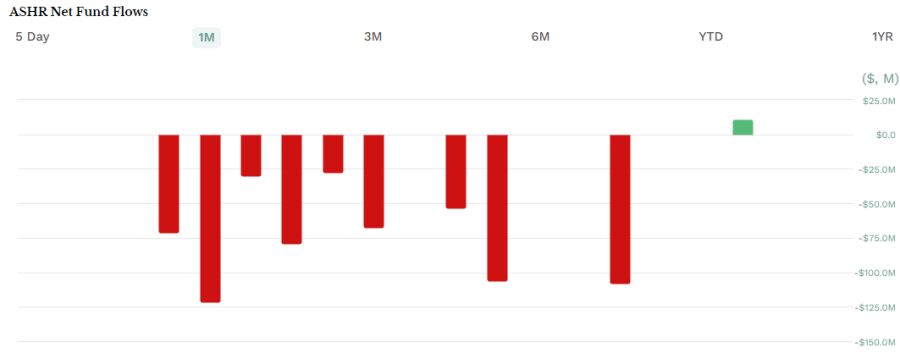 过去一个月,ASHR大部分时间为净流出,但12月4日突然转为净流入1090万美元(图片来源:etf.com)