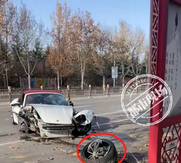 根据多段网友发布的现场视频显示,一辆红顶白身保时捷轿车的车头、车尾严重变形,右前侧轮胎完全脱落,车体严重受损,零件碎片散落一地,事故中另一辆红色三轮车,车体与车身完全分离在道路上。