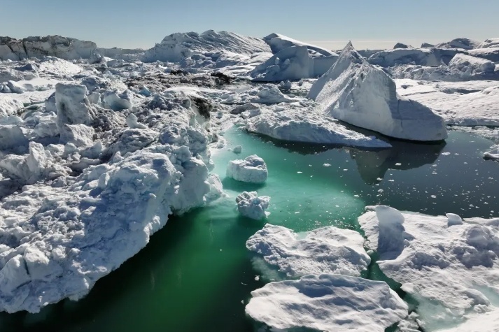 △鸟瞰格陵兰岛伊卢利萨特冰峡湾融化的冰山(图源:纽约邮报)