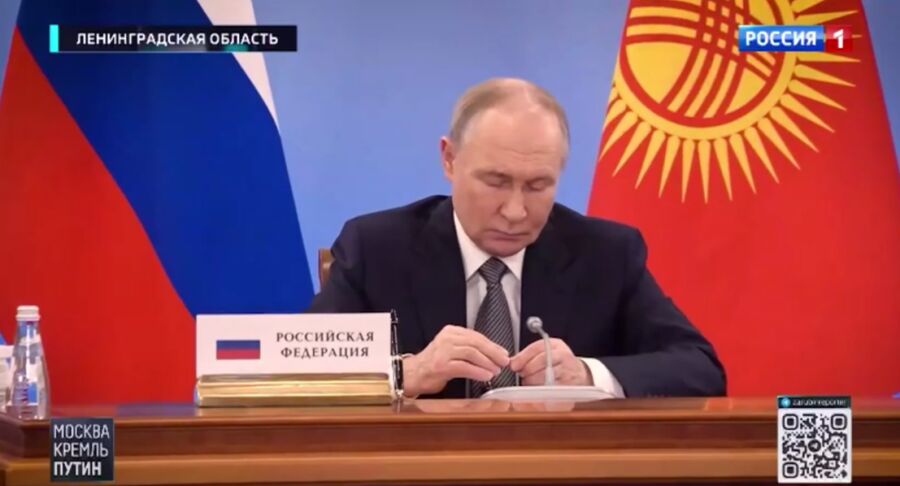 普京在欧亚经济联盟会议上修手表画面 图源:俄记者扎鲁宾社交媒体账号视频截图
