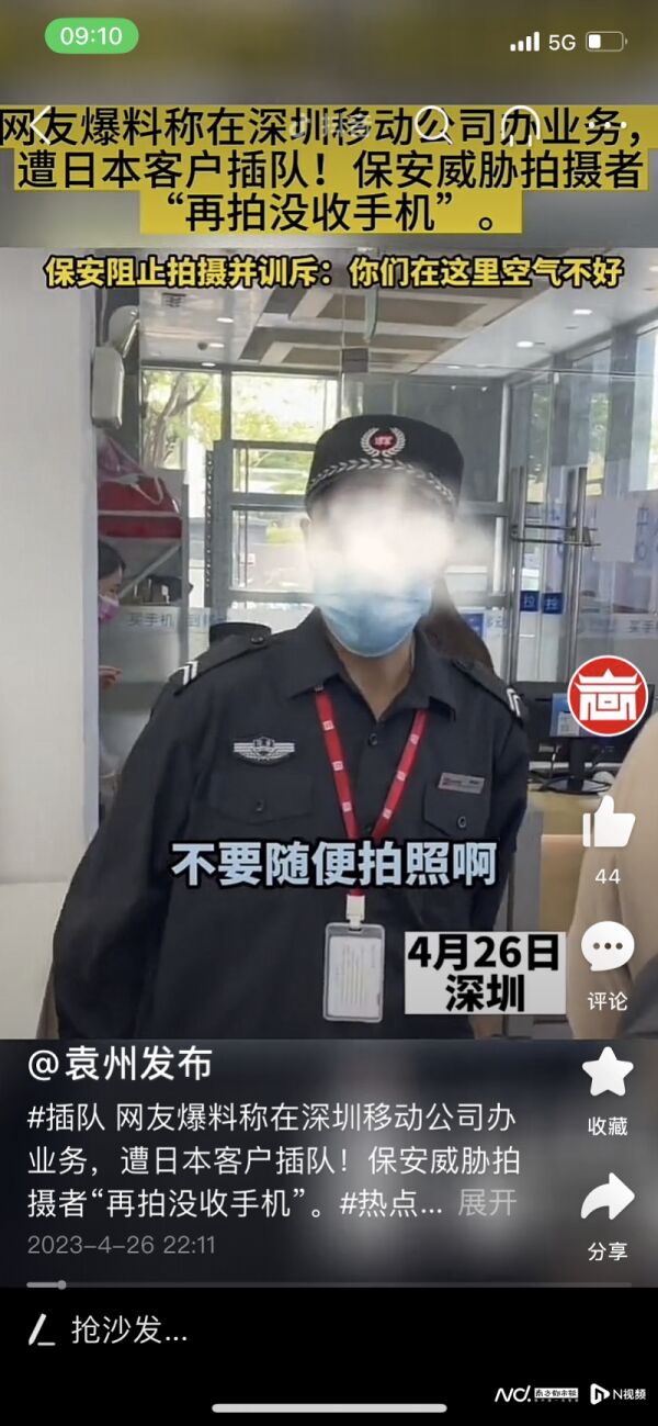 而根据深圳移动发表声明表示:4月26日,有网友在短视频平台发布视频,称在深圳移动营业厅办理业务时被外籍客户插队。对此,我公司高度关注,并迅速调取营业厅录像进行核查,发现网传消息不实。