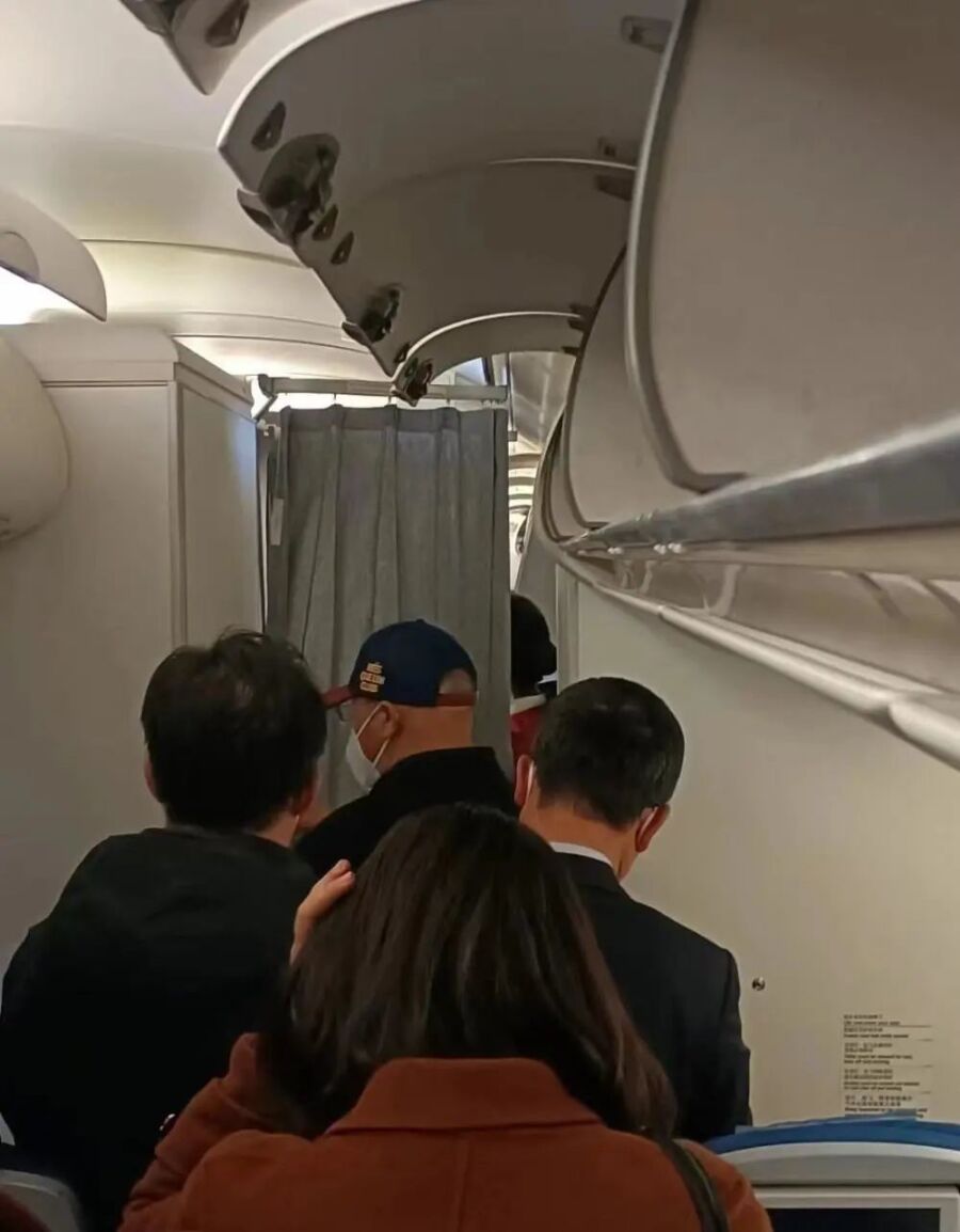 “此时后排乘客还不知道情况,机长全程没有广播,飞机一直停在停机坪上,渐渐地乘客们意识到有问题,开始骚动了。有人在记录,了解情况后有人在抱怨,但飞机还是一直没有动静。”