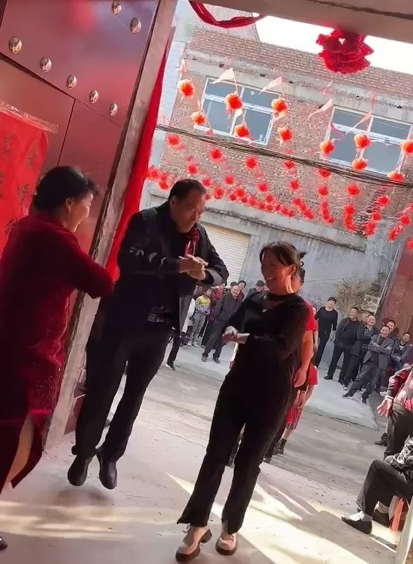 36岁当上“喜公公”?咋回事?河北沧州一对夫妇在儿子儿媳的婚礼上,竟然在门口“蹦跶”迎接亲朋好友,笑得合不拢嘴!这是什么神奇的婚礼仪式?简直比过年还热闹,蹦蹦跳跳,屁股对屁股,喜庆劲儿十足!别说,这对父母行的“蹦跶礼”,气氛真的是一绝!