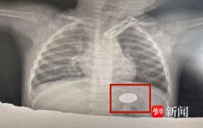 前段时间,这名患儿因为肺炎而被连云港市妇幼保健院儿科收入院治疗,医生在给孩子拍胸片时,意外发现附件中上部消化道异物,综合评估,考虑是硬币的可能性大。
