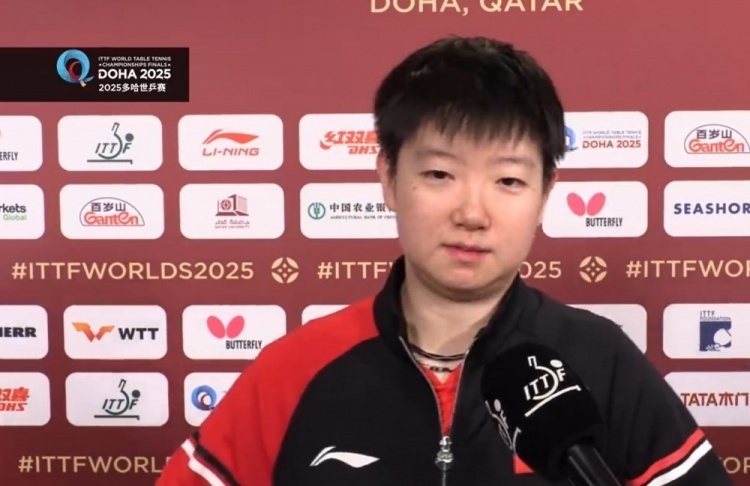 直播吧5月23日讯 在凌晨结束的世乒赛女单1/8决赛中,孙颖莎4比2击败韩国选手申裕斌,晋级8强。赛后,她接受了记者采访。