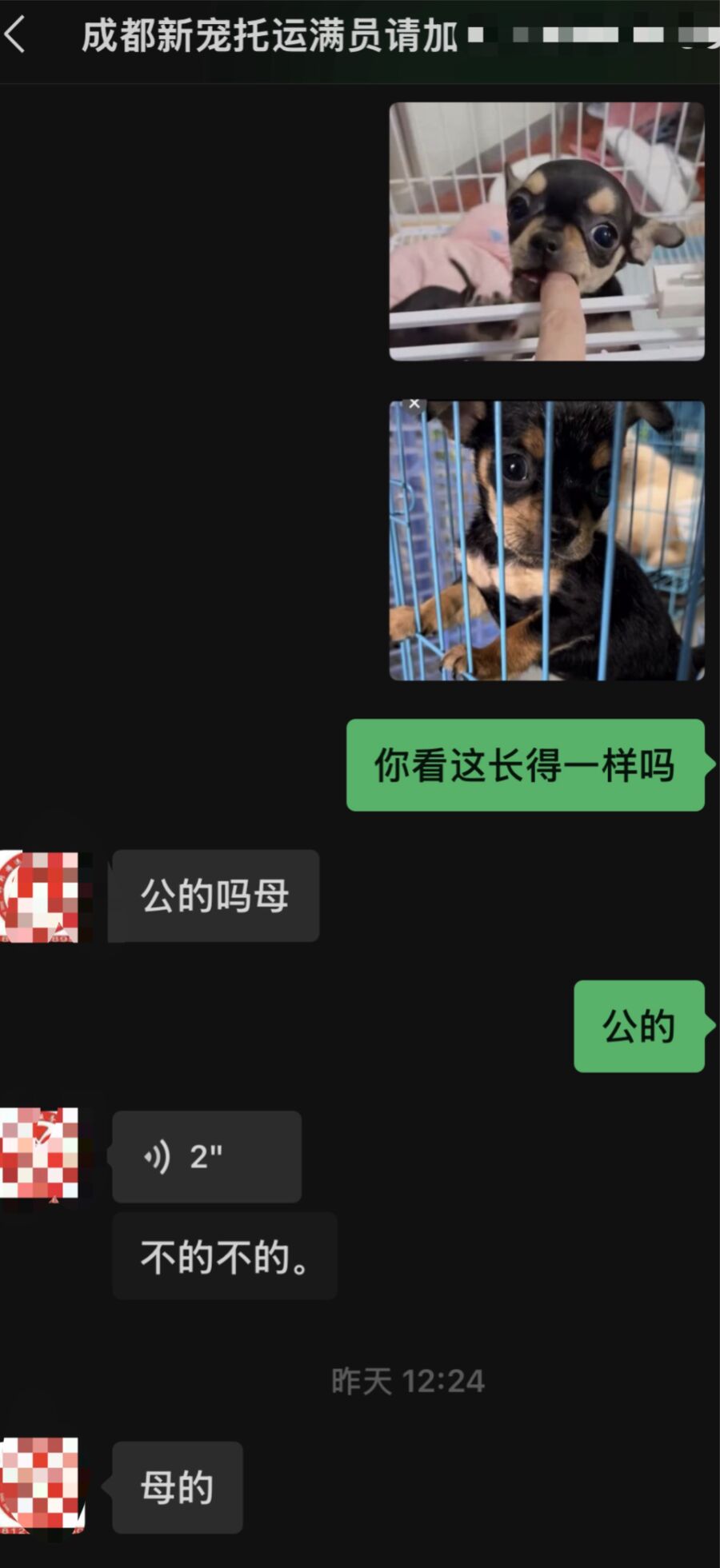 之后,一位自称是售后人员的人加上陈女士微信,称他们可以再发一只狗,但前提是她先将这只狗寄回去。陈女士觉得不保险,让其出示营业执照,并签合同,均遭到拒绝。