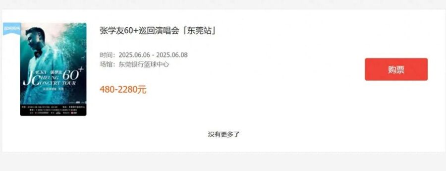 张学友东莞巡回演唱会的有关信息。图/猫眼官网