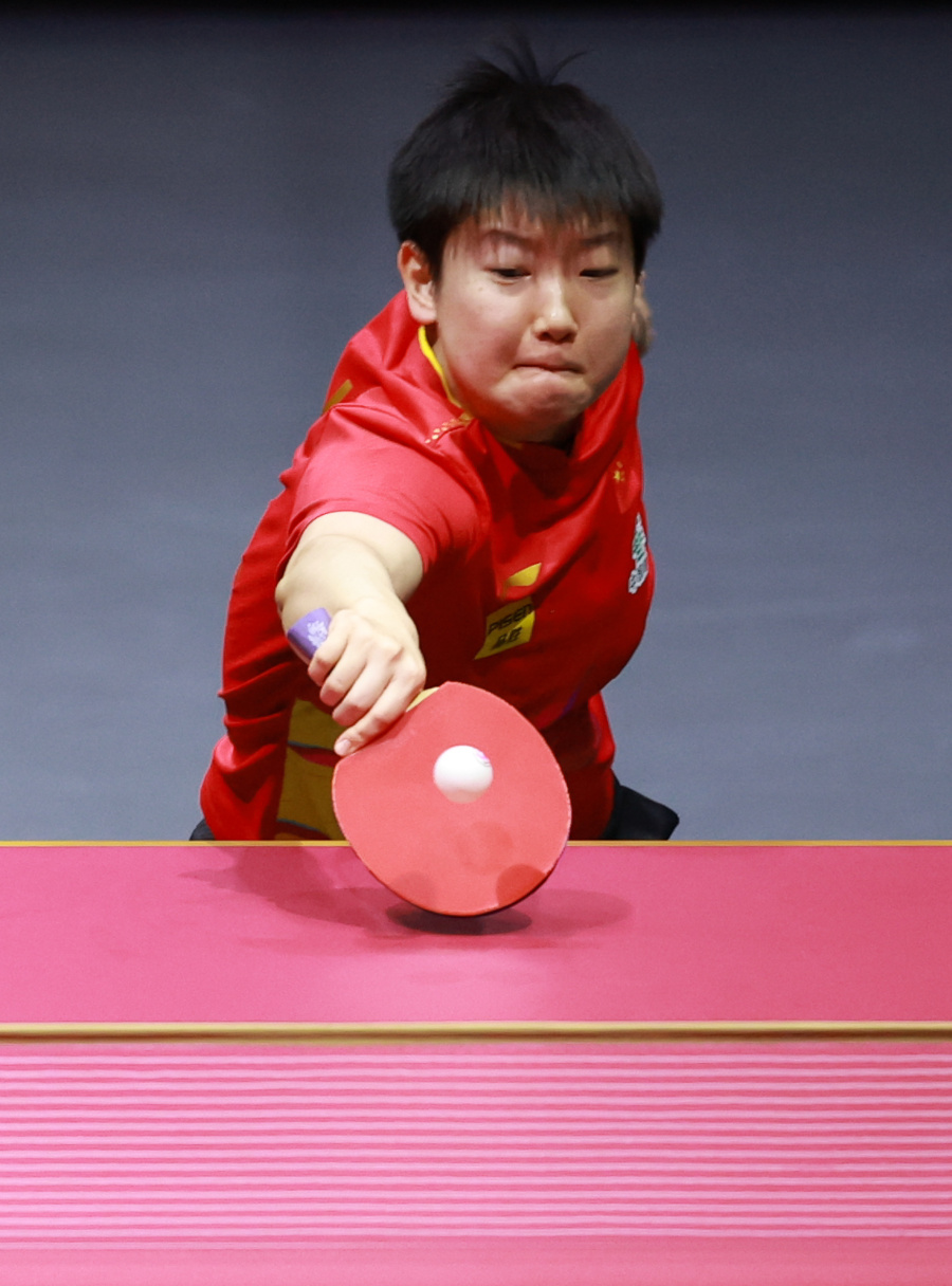 5月23日,孙颖莎在比赛中回球。新华社记者 刘续 摄