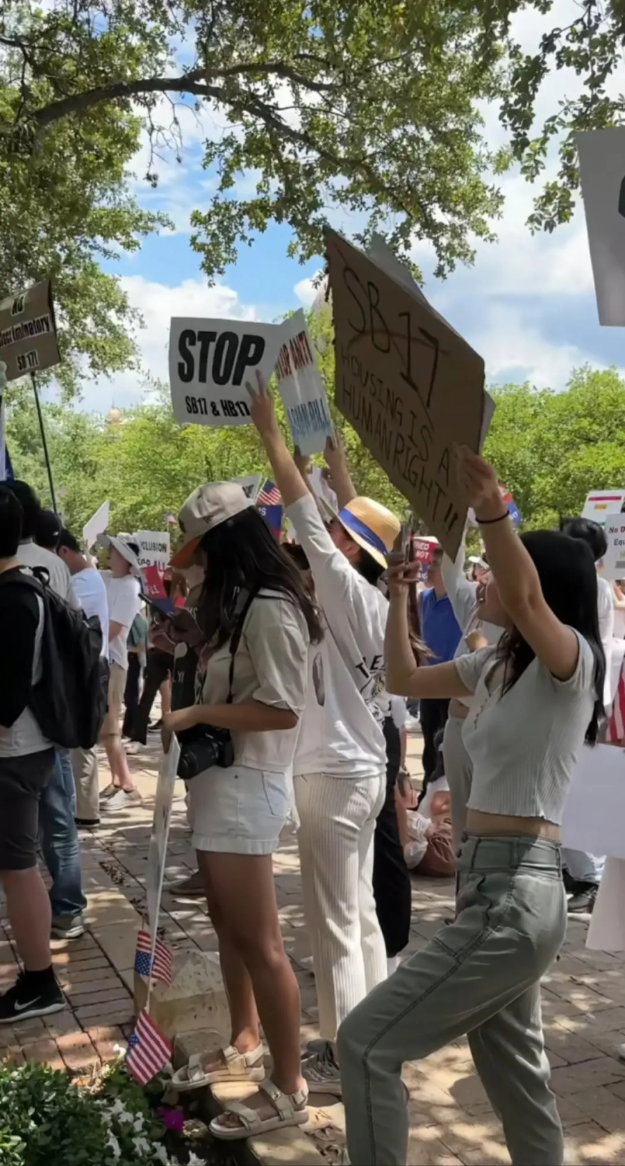 此项法案在众议院投票通过后,立即在当地华人中引发强烈反对。当地时间5月10日中午,几十名当地华人聚集在得州州长家门口高呼口号抗议。