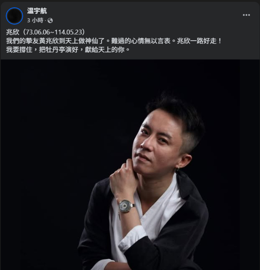 著名的京剧戏曲博士,年轻演员黄兆欣因病猝死离世,年仅40岁。