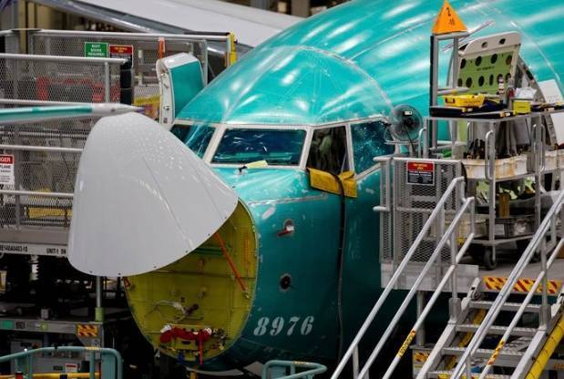 当地时间2024年6月25日,美国兰顿市,波音737 MAX飞机正在工厂进行组装。 彭博社