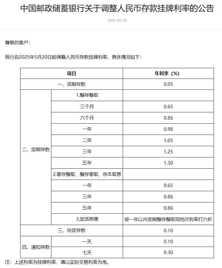 中国邮政储蓄银行5月20日发布的公告