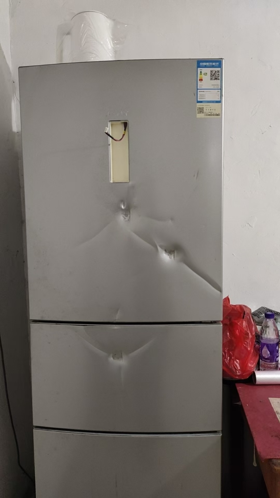 陈大发的冰箱被儿子陈晓明砸坏 来源:受访者提供