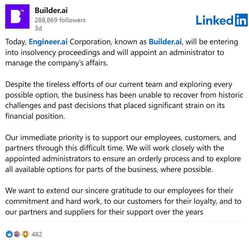Builder.ai的破产清算通告