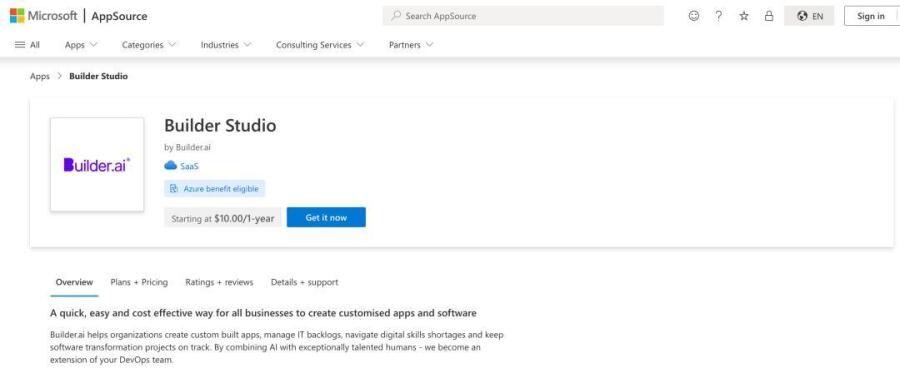 Builder.ai平台被集成到微软云服务产品中
