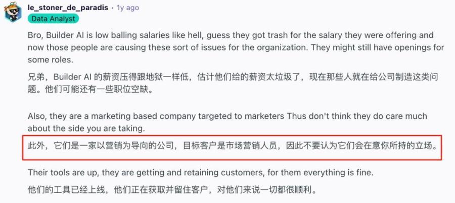 而且有前员工透露Builder.ai极限压低员工工资,甚至称「给的薪资太垃圾」,并且不是AI导向,而是营销导向的公司。