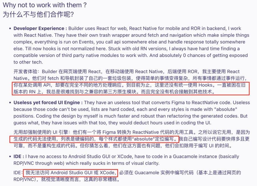 包括:开发体验极差、缺少模块、代码无法使用、无法访问IDE甚至有些代码完全无法修改。