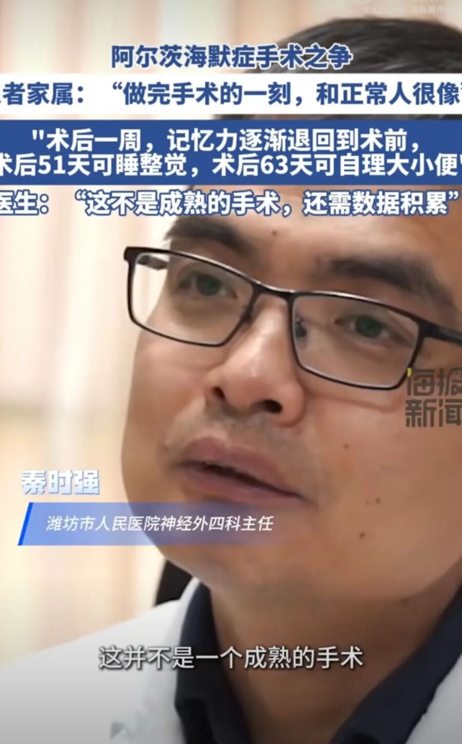 2024年9月30日,杨岚带着82岁阿尔茨海默病的父亲杨铜完成了“颈深部淋巴管-静脉吻合术”,父亲刚从麻醉中苏醒就认出了她。手术在另一位山东济宁的重度阿尔茨海默病患者身上也有效果。为其做手术的潍坊医生秦时强说,患者术后不到半个月已能自主进食,还能与陪护人员简单交流。然而,这种改善在数月后出现停滞,甚至有倒退的迹象。