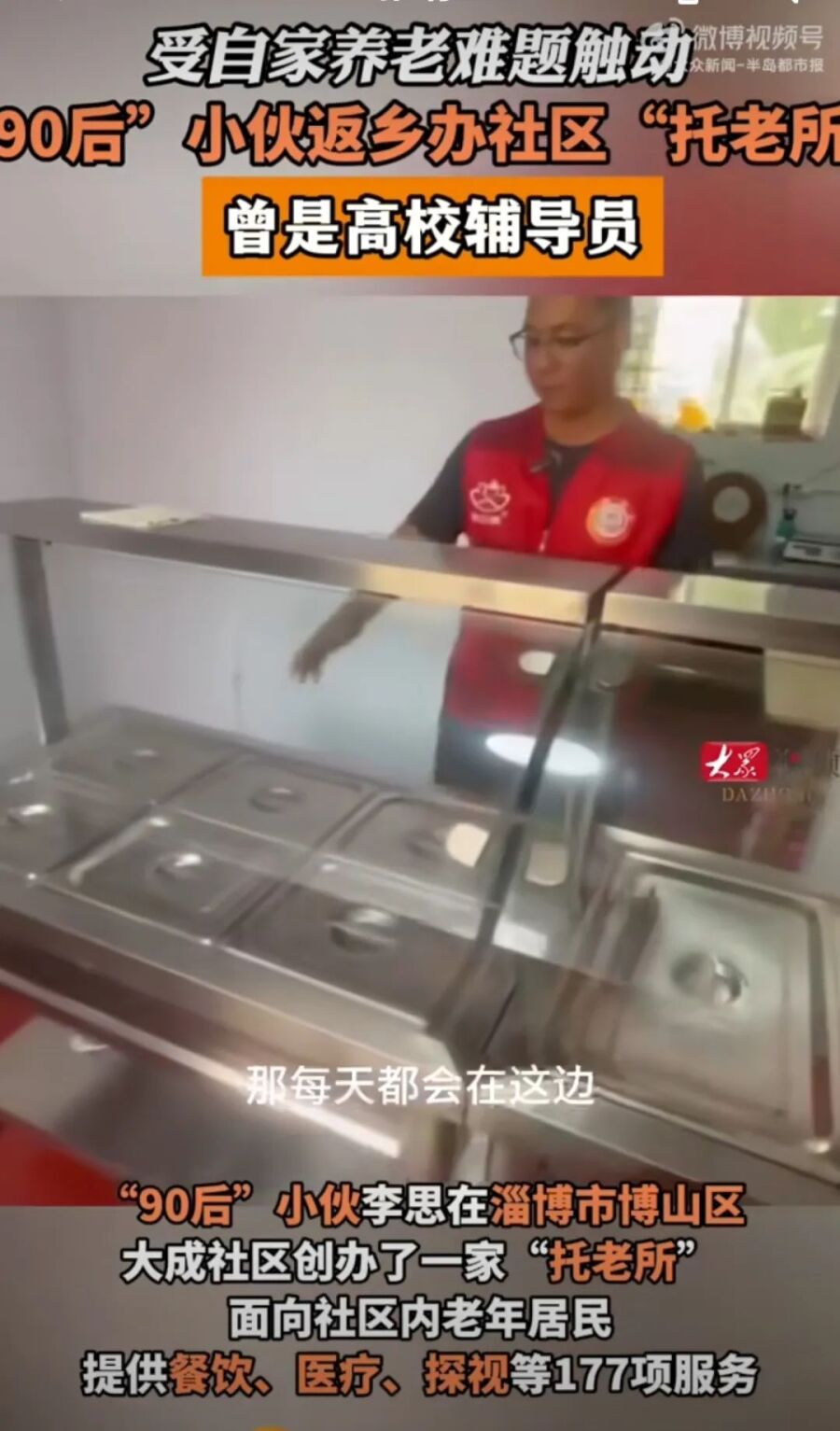 近日,山东淄博市博山区大成社区的 “托老所” 备受居民称赞,这是由 “90 后” 小伙李思创办的家庭和养老社区服务站。李思曾在公办高校做过辅导员,在私立中学干过副校长,因亲眼目睹父母养老压力之大,他毅然辞去工作回乡创办了“托老所”。“昨天有人随口提了句想喝猪肉汤,今天就安排上了。花卷还是杂粮的,说是对我们老年人肠胃好。”87 岁的吕锋老人对社区食堂赞不绝口。服务站还提供包括义诊、探视、送货上门等居家养老所需的18个大类、177项服务,全方位覆盖老年人生活需求。“创业压力很大,目前每一餐经营下来都在亏钱。”但李思对未来充满信心,期望更多人加入,为家乡需要照料的老人贡献一份力量。(大众新闻—半岛都市报)