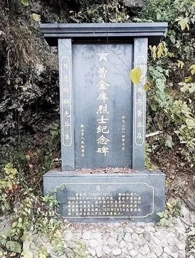 曹金库于1935年土地革命战争时期英勇牺牲,1988年被民政部认定为革命烈士。牺牲后,他的遗骨被安葬在老家,每年清明节都有不少群众前往追悼缅怀。2015年前后,当地有关部门在曹金库烈士的牺牲地——沙地村青山脚下,修建了报道中所提及的石碑。