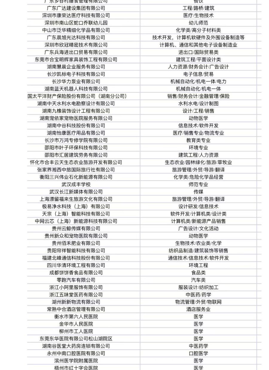 中介提供的合作企业名单