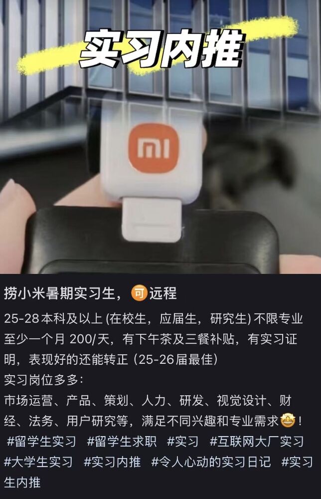 给钱就能进字节、小米实习