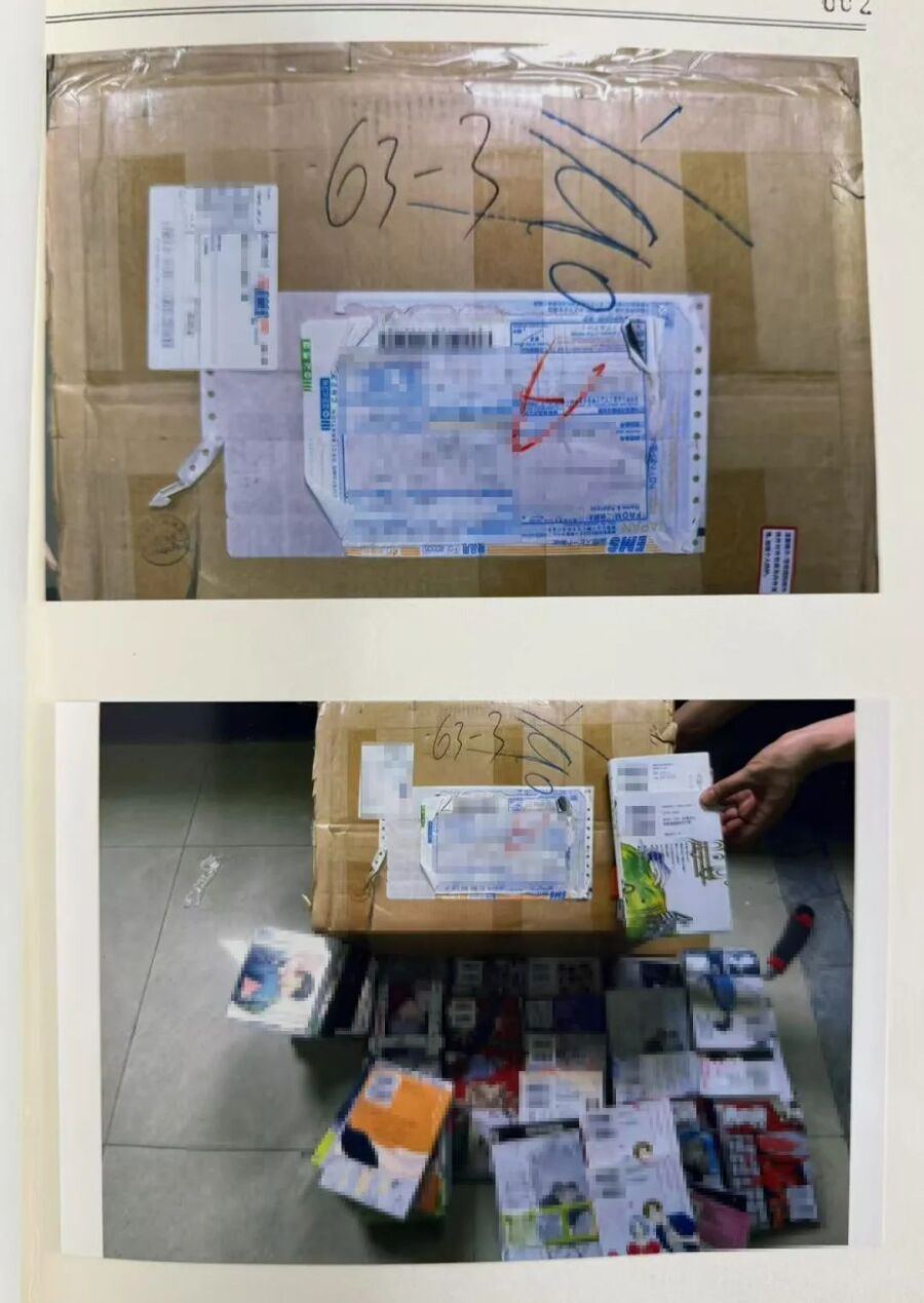 ▲北京海关缉私局民警在李小美家中查获的淫秽漫画。 图源:北京市第四中级人民法院