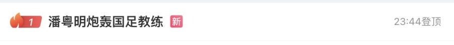 “潘粤明炮轰国足教练”的话题在潘粤明发文一个小时后登顶微博热搜榜。