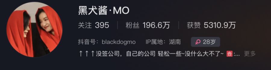 博主@黑犬酱 因模仿韩剧《黑暗荣耀》中的角色“妍珍”而走红,成为了一位知名的美妆博主,在抖音上积累了近200万粉丝。