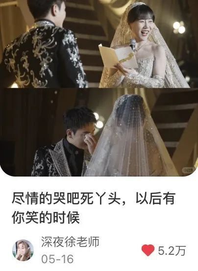 婚礼结束后,新娘也沿用了“死丫头”的设定,在发布婚礼视频时配文调侃: