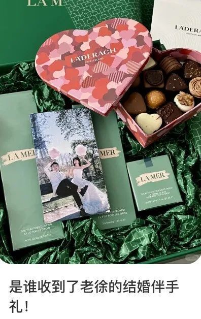 此外,伴娘收到的红包高达上万元,普通来宾拿到的伴手礼中也包括价值3000多元的海蓝之谜礼盒和被称为“巧克力界爱马仕”的莱德拉巧克力盒。