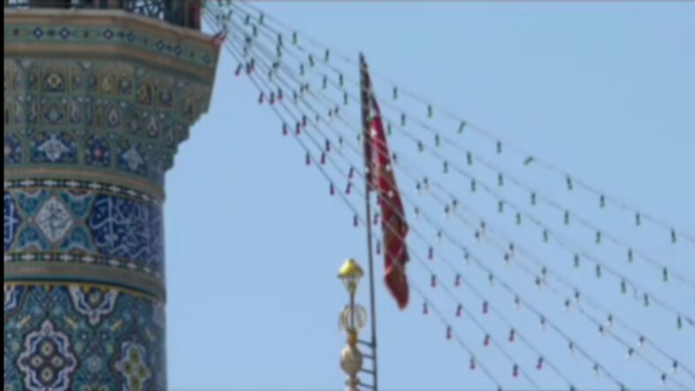 伊朗“圣城”清真寺升起象征“复仇”的红色旗帜。
