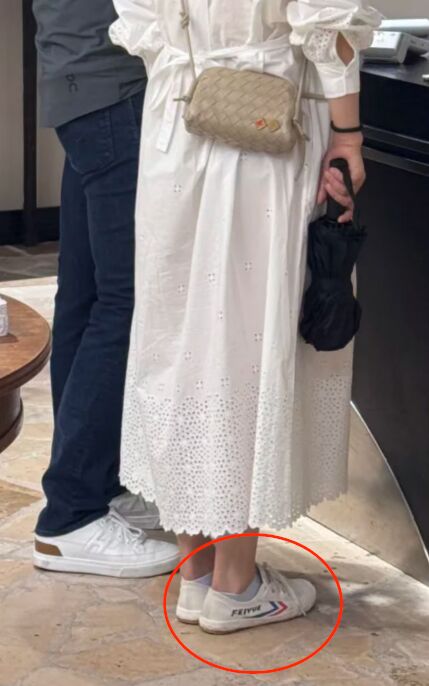 其实,郭晶晶穿得这双鞋并不是什么奢侈品牌,只是一款60多块钱的飞跃帆布鞋, 而且仔细看郭晶晶的这双鞋,她应该穿过很多次了,鞋面有些发黑,看起来甚至有点脏。