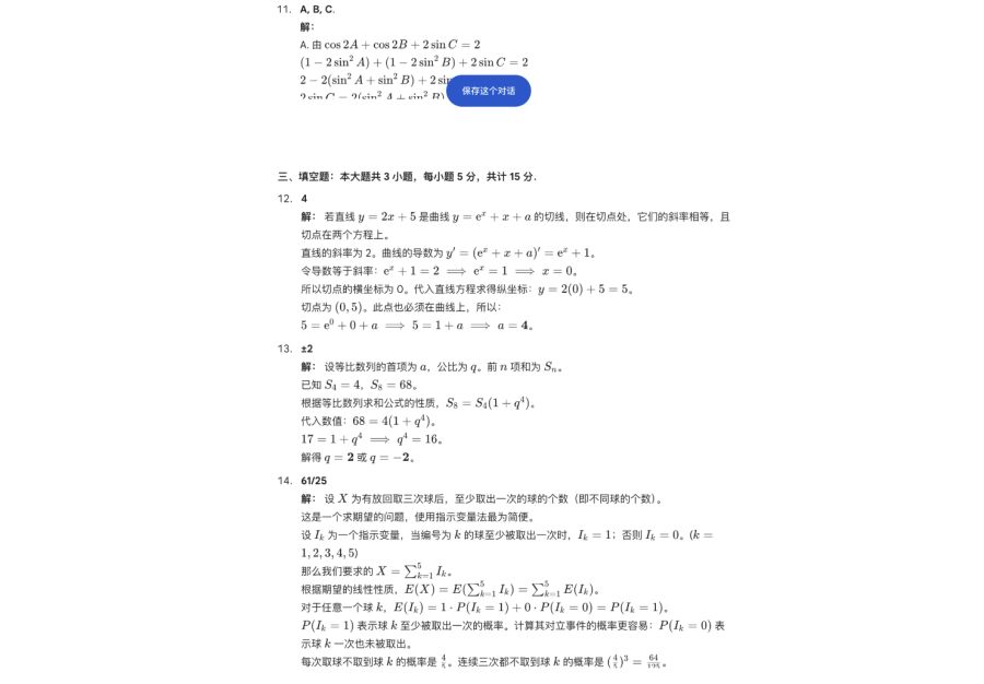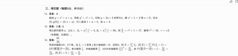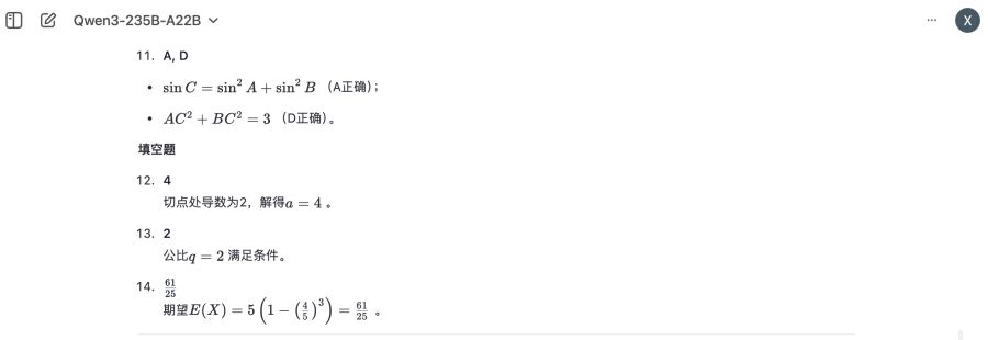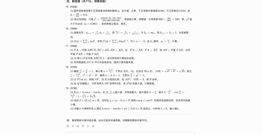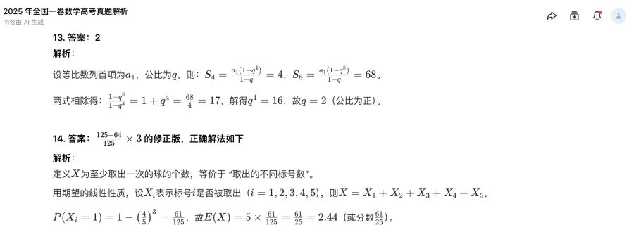 4.填空题第二个,答案应为±2,但是显然有一些AI没有考虑公比q可以为负,直接就扣掉了5分,比较遗憾。