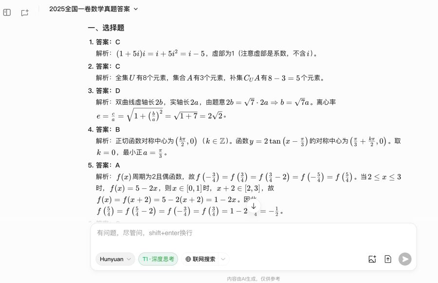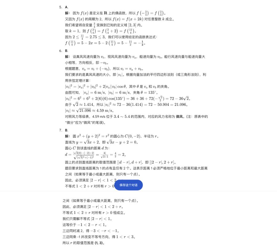 1.单选题前面5道,各家AI基本都可以很好地完成,对于考生来说,也都是相对容易的题目。