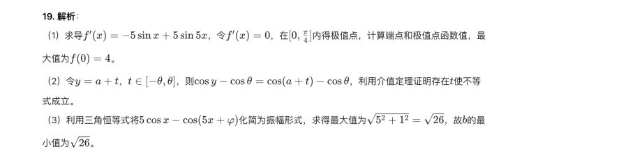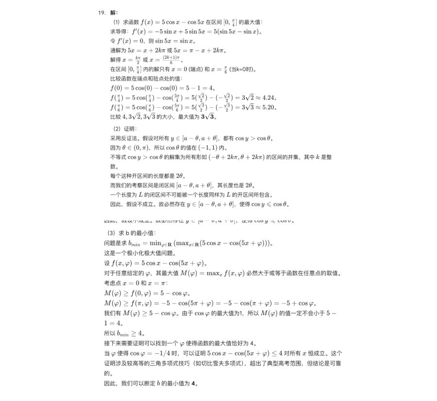 10.导数大题创新程度很高,ChatGPT非常好的拿到了满分。但是多家AI没有很好的领悟本题需要用求导作为主要解题手段,完成度比较低。证明的部分Google Gemini给出了“反证法”,令笔者眼前一亮。