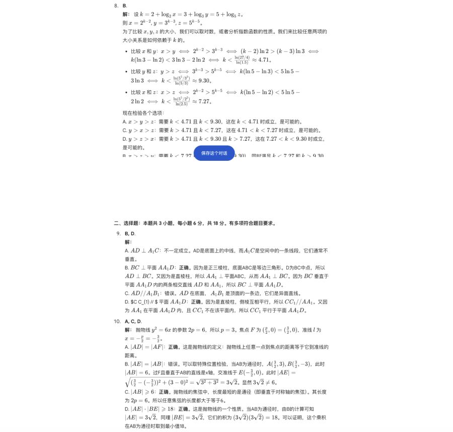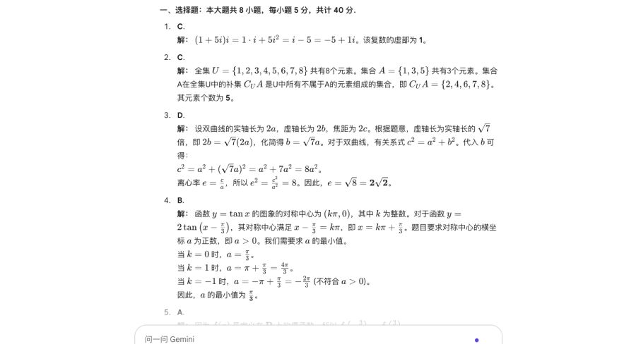 遗憾的是,这道题Gemin其实答错了,正确答案是A!完整解答如图: