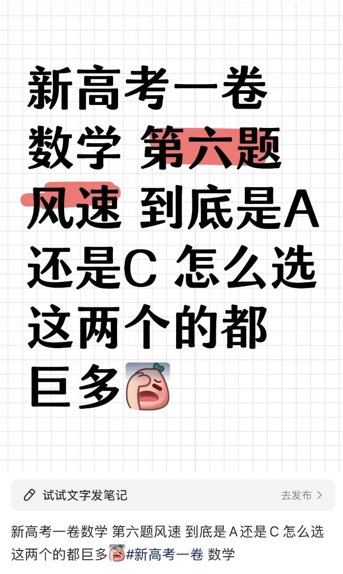 2025年高考刚结束,正当广大网友在给AI写的高考作文打分时,另一边,就全国一卷数学题第六题选A还是选C,吵起来了。