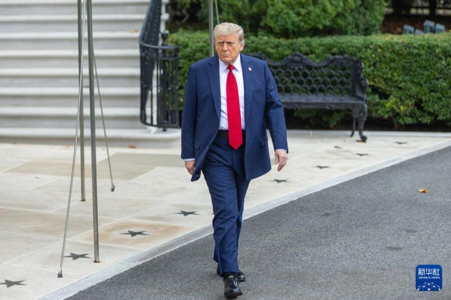 6月15日,在美国华盛顿白宫,美国总统特朗普准备登机。新华社记者 胡友松 摄