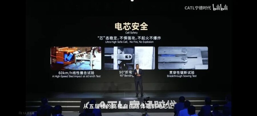 宁德时代也针对单独的电芯做了不少极限测试,比如60km/h直接撞击、90°弯折、以及直接用电锯把电芯劈成两半等。