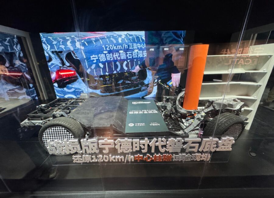 为了证明试验的真实性,宁德时代还将“战损版”磐石底盘安排到了上海车展展厅,来了一把现场还原: