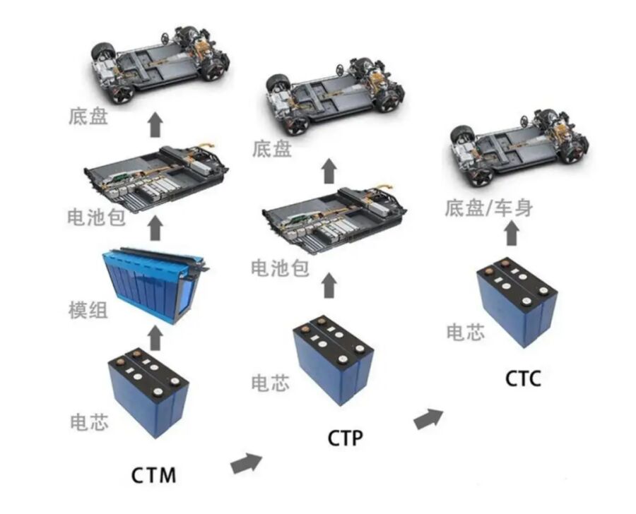 后来宁德时代率先提出“去掉电池模组”的方案,于是就有了更高集成度的CTP电池包(Cell to Pack)。