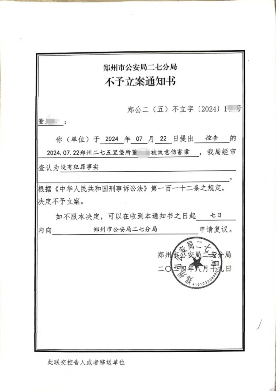 针对医院回应,董女士告诉记者,早在2024年8月,警方已出具不予立案通知书,理由是没有犯罪事实。“我不会放弃,我的最大目的还是要追究他们的刑事责任,但也要考虑民事赔偿了,我们正准备向法院起诉维权。”