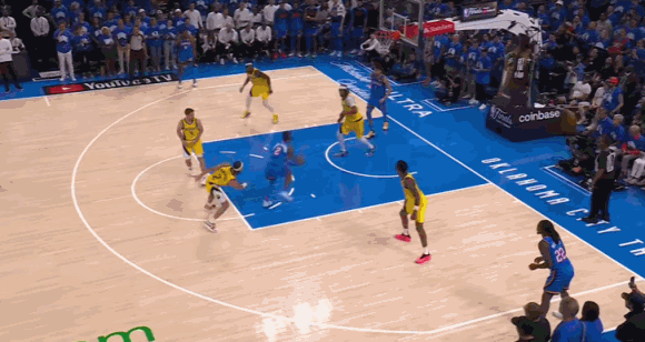 第三节,亚历山大三分命中,随后又连续助攻霍姆格伦、杰威命中三分!