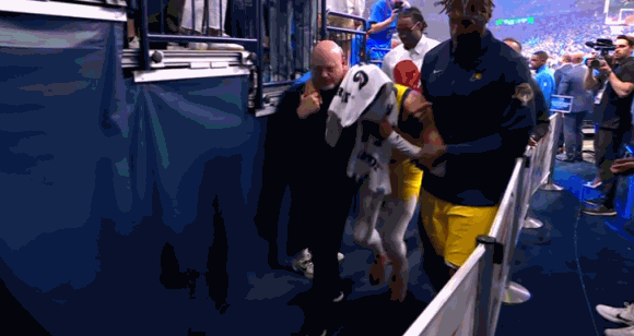 距离首节结束还有5分钟左右时,哈利伯顿持球突然倒地,小腿后侧明显抽动。他痛苦地拍打地面,被搀扶出场。哈利伯顿的父亲一脸沮丧,随后他向ESPN确认,儿子遭遇了跟腱伤病。