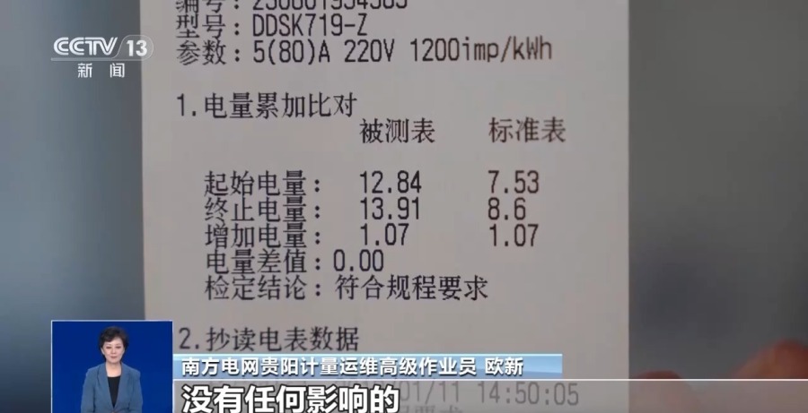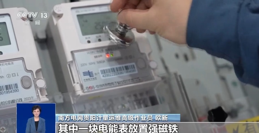 南方电网贵阳计量运维高级作业员 欧新:通过试验结果来看,强磁铁对电表走字没有任何影响。
