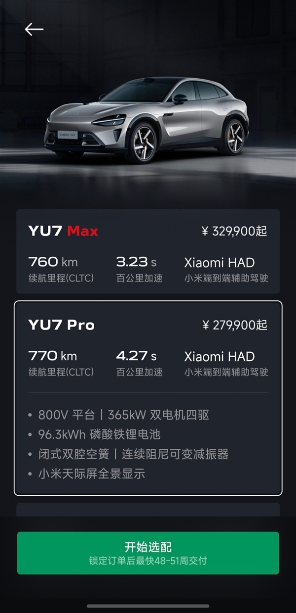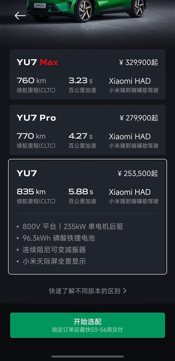 也就是说,小米YU7标准版现在定车要等一年时间才能提车,即便时间最快的Max版本,也要等待7个月以上才能提车。