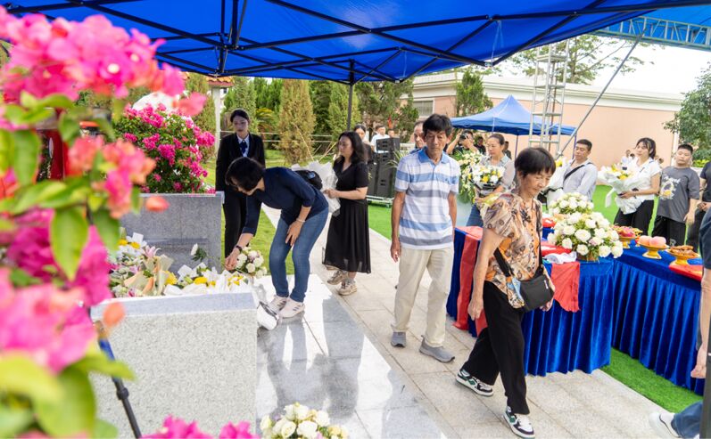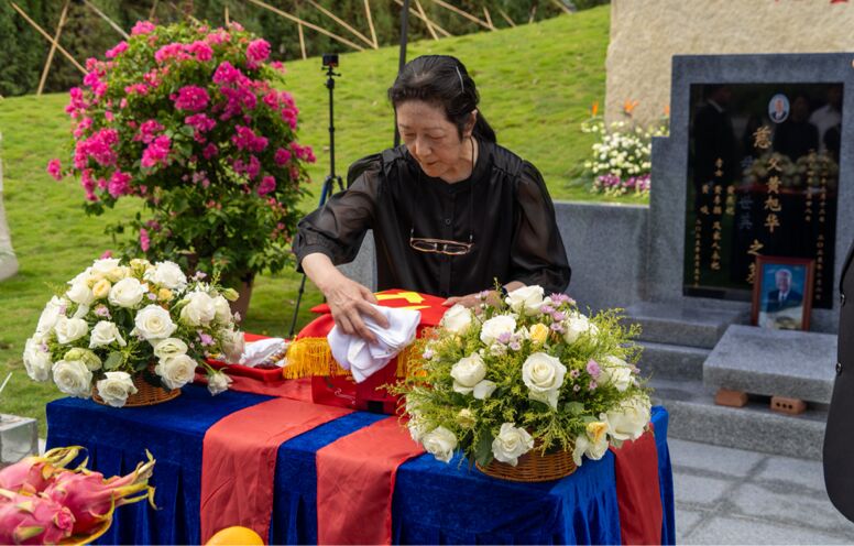 ▲ 黄旭华院士大女儿擦拭骨灰盒